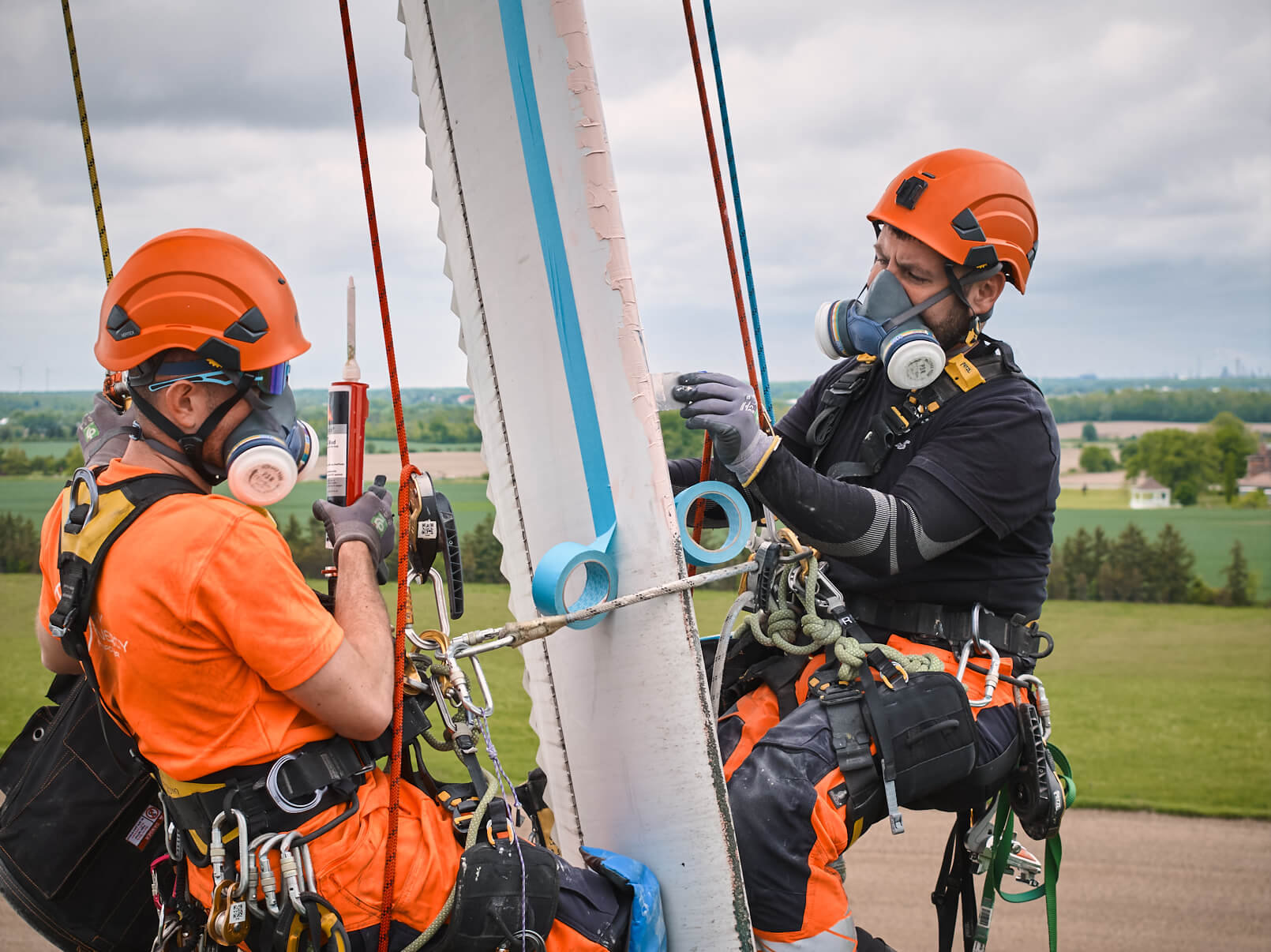 Sky-Energy technicians are certified in Blade B, C, and D, equipping them with the specialized skills required for comprehensive wind turbine blade maintenance and repair.